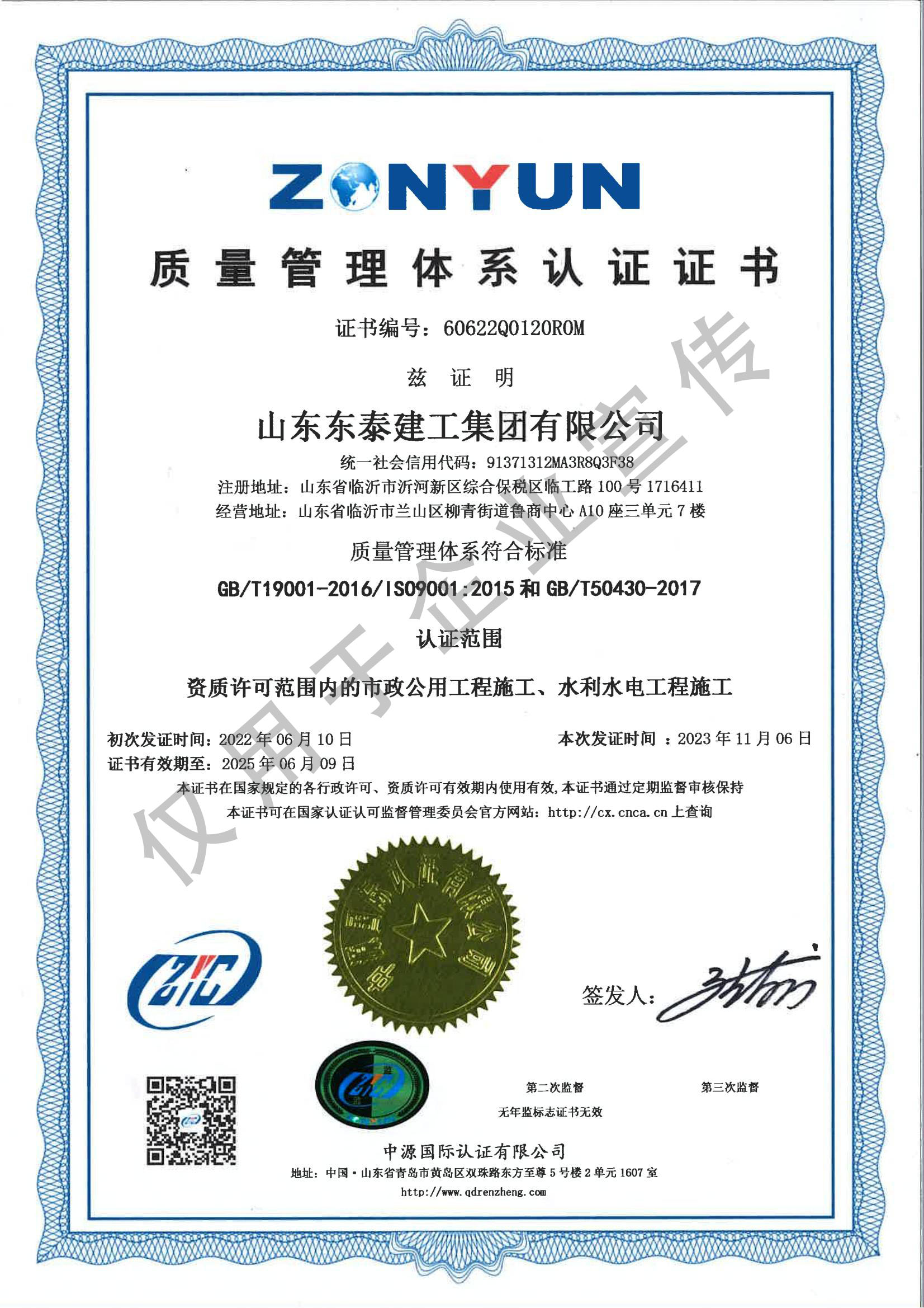 質(zhì)量管理體系認(rèn)證證書