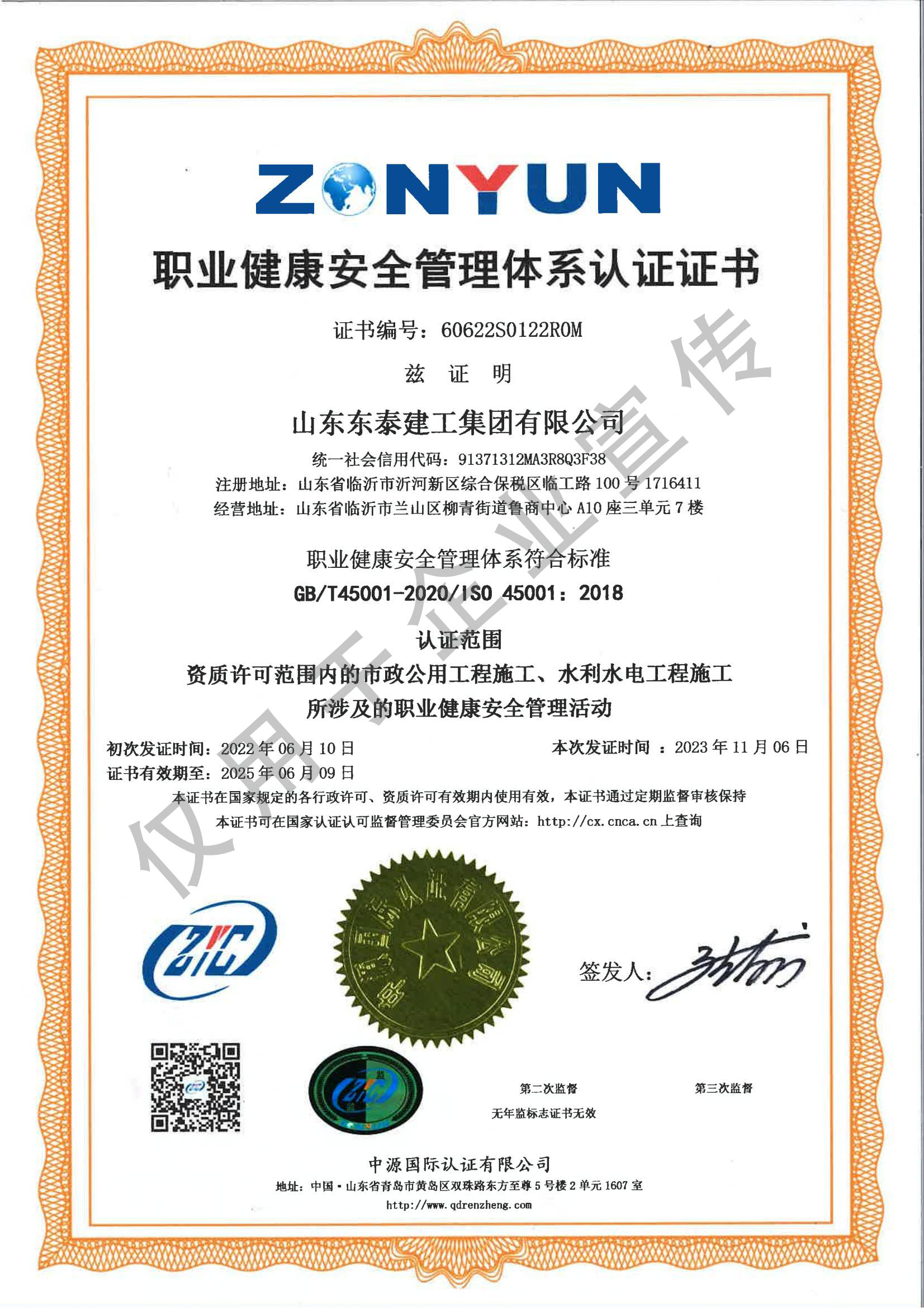 職業(yè)健康安全管理體系認(rèn)證證書
